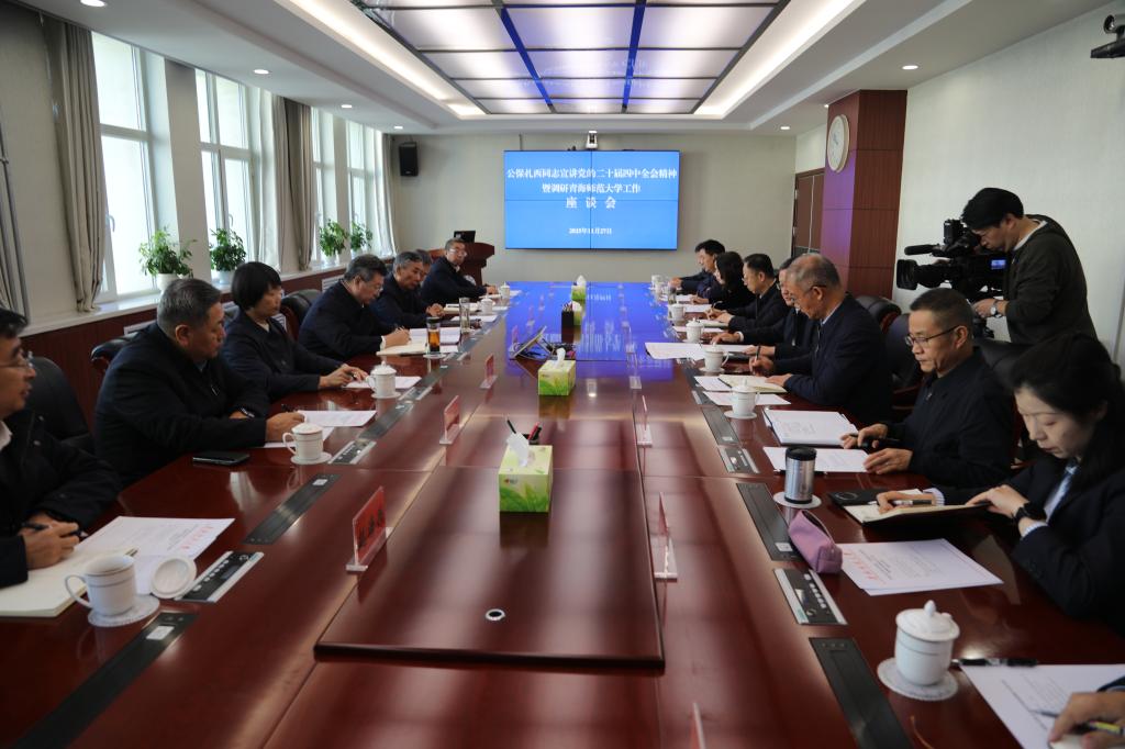 座谈会上,调研组听取了毛学荣代表学校作的工作汇报,对学校深耕师范教育主业,为青海教育事业发展和人才队伍建设作出的重要贡献给予高度评价。公保扎西向参会同志分享了学习党的二十届四中全会精神的心得体会。指出,党的二十届四中全会是在向第二个百年奋斗目标进军的新征程上举行的一次十分重要的会议。青海师大要认真落实省委省政府部署要求,学习好宣传好贯彻好全会精神,坚持正确办学方向,大力弘扬教育家精神,培养造就新时代高素质教育人才队伍,为青海教育高质量发展提供重要支撑。