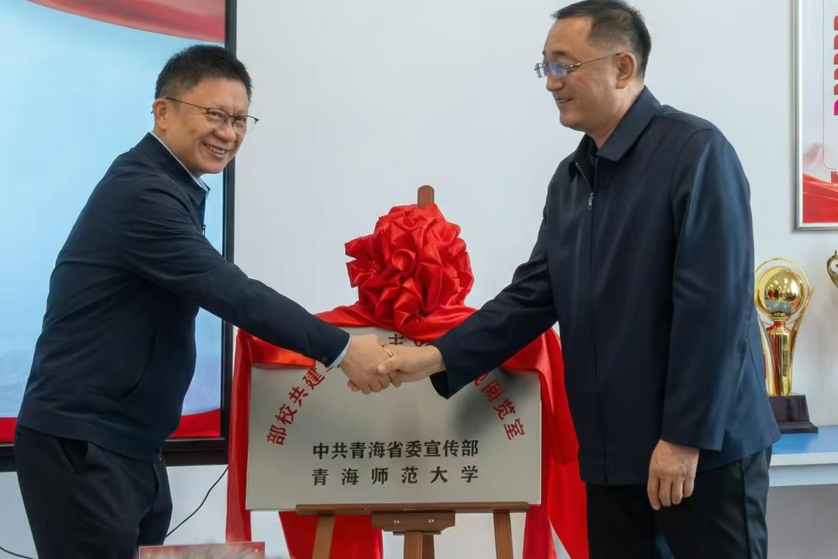 仪式上,孙海东、牟昱苍为部校共建马克思主义新闻观阅览室揭幕。张毓强、李兵兵分别向青海师范大学新闻学院捐赠图书1080册和205册。