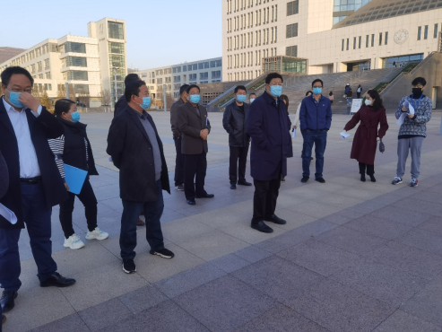 5日上午8:10分,检查组在图书馆南广场集合,冶成福对例行检查工作做了安排,提出具体要求,各学院领导和教务老师分头到本单位学生宿舍检查线上教学开展和学生学习情况。