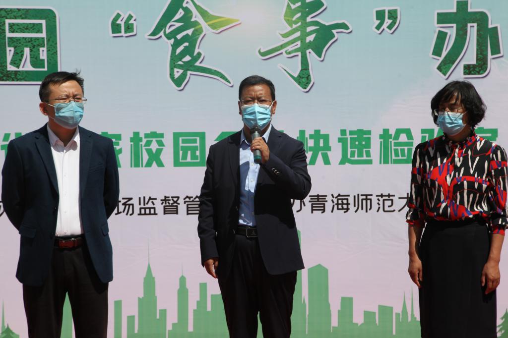 9月1日,校园食品快速检测室启动仪式在我校举行。城北区区委常委、副区长蒋轶彪,西宁市市场监督管理局副局长陈晓萍,城北区市场监督管理局副局长陈建明,我校副校长董占明,后勤管理处处长马占杰,副处长沈贵林参加了启动仪式。