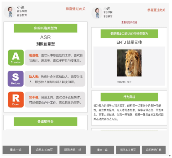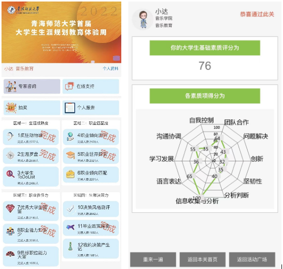 这次活动受到了同学们的热烈欢迎,通过线上亲身体验,同学们纷纷表示自己得到了提升与收获。“‘职业—倾向匹配’这个项目让我了解了自己所在的专业能在其他职业中所能胜任的工作,也让自己感受到了自己所学专业在未来就业时能应聘哪个岗位,这提醒了自己要及早做好未来职业生涯规划。”来自文学院2021级张同学这样讲到。外国语学院2020级林同学表示印象最深刻的是“决策风格测评”项目,她认为这个项目想要获胜必须要有长远的眼光。对于职业规划而言,也要把眼光放长远,不能只是看到眼前的发展情况,更要用长远的眼光看待自身的未来发展前途,才能使自己在职业生涯中获得更好的发展。化工学院2021级赵同学表示,“大学生就业,近年来面临一些困难,我们大学生的择业观要摆正。找到自己的定位,投入到踏踏实实的工作中,实现自己的人生理想。通过参与活动,增长了不少见识,这让我更加明确大学生活学习的目标,希望学校多举办这样有意义的活动。” 活动最后,参与活动的同学每人都会得到自己专属的学生个人报告,使得生涯成果可视化。