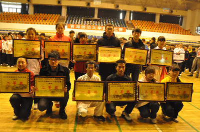 此次比赛分为长拳和太极拳两个项目,以动作规范、精神风貌和武术表演风格作为评分依据。最终,经过评委严格评定,经管学院夺得长拳冠军,政法和物理并列第二名,美术、生地和化学获得第三名;政法学院夺得太极拳冠军,生地和美术并列第二名,人文、外语和数学获得第三名。
