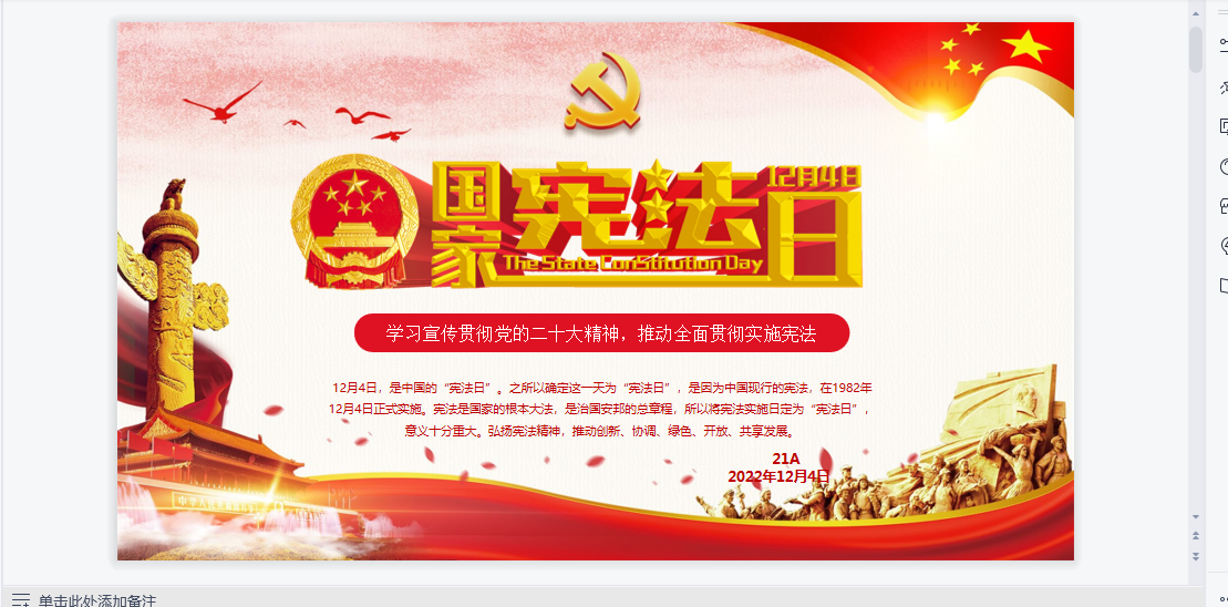 为深入贯彻落实党的二十大精神,认真学习习近平法治思想,推动广大青年学生学习宣传宪法,弘扬宪法精神,维护宪法权威,在第九个宪法日到来之际,我校200余个班级组织召开了宪法学习主题班会。