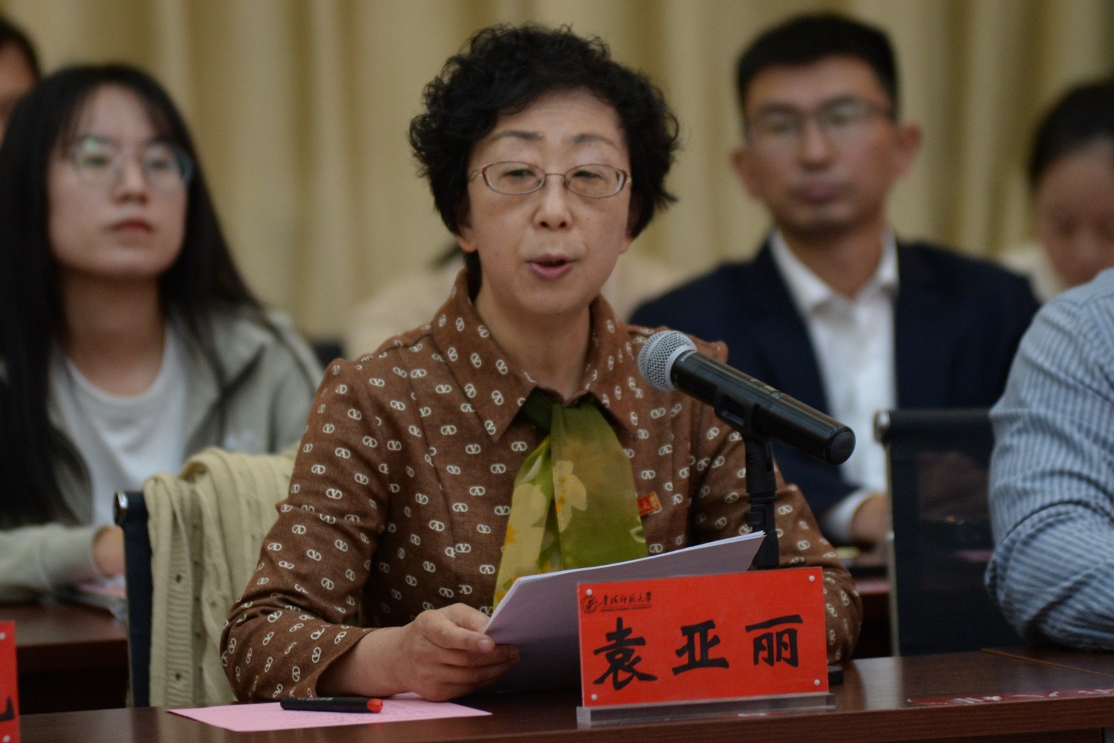 历史学院袁亚丽教授代表老教师发言,她回顾自己31年教学生涯,认为作为一名优秀的教师,一是要有正确的价值取向,要不断提高自己的政治品格、道德修养。二是要有强健的体魄、健康的心理素质和良好的个性特征。三是要品格立人,尊重三尺讲台,具备多元的知识结构和娴熟的教学艺术。四是要有对学术科研的敬仰、坚持和耐力。最后,袁老师深情寄语新入职教师:揣着对教育事业的敬仰、情怀、奉献、责任和担当,努力前行,在未来的职业舞台上书写自己的辉煌。