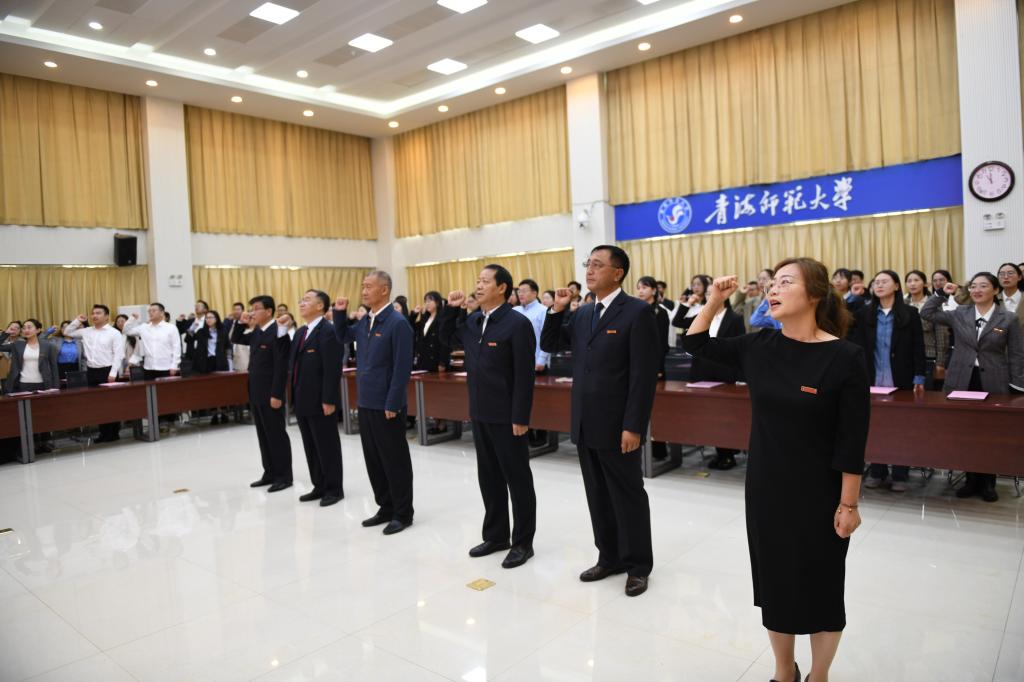 9月8日上午,我校在城北校区行政楼一楼学术报告厅举行2023年新入职教师宣誓仪式。校长涂清云、副校长樊协珍、青海理工大学生态与环境科学学院院长陈铁喜,校组织部、宣传部、人事处、教务处、科研处、学生工作处、研究生院、教师发展中心等职能部门负责人和2023年新入职的114名教师(含孵化青海理工大学生态与环境科学学院教师)参加了仪式。仪式由校党委副书记许存宁主持。