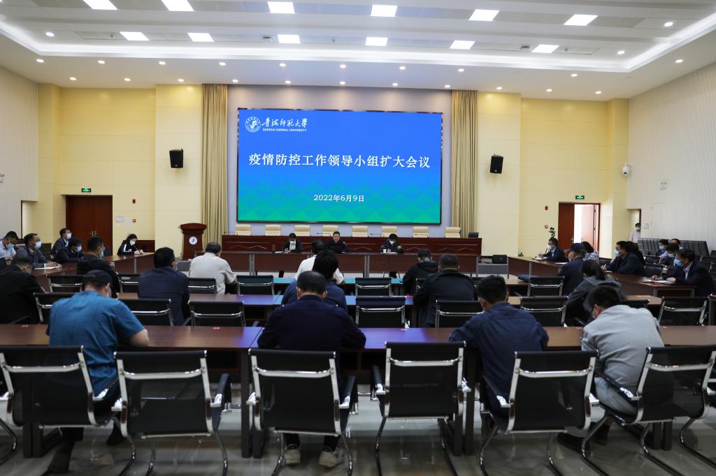 6月9日下午,我校疫情防控工作领导小组以线上、线下形式组织召开扩大会议,安排部署了近期城北校区疫情防控、学生思想教育等相关工作。校党委书记毛学荣就持续做好校园封闭式管理模式下学生思想教育引导工作做了具体部署,细致协调安排了校园快递投递、学生思想教育、毕业生行李寄送、毕业典礼、毕业合照安排、期末考试、学生管理等事宜。