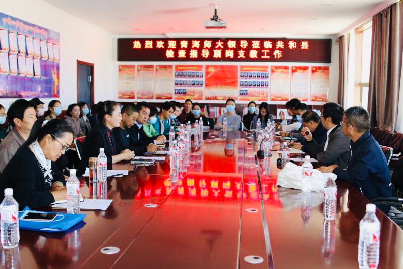 6月29日上午,在共和县民族中学,赵海兴召集县城周边8所学校29名实习生进行座谈。共和县教育局才郎措姆书记、教育局督导室主任扎西以及共和县民族中学校长才让东智参加了座谈会。赵海兴与29位实习生交谈,实习生们敞开心扉、畅谈自己在支教实习中的感受和收获,分享了支教的点滴、从备课、组织课堂教学、班级管理、日常生活中遇到的问题等。对于同学们在实习中遇到的困惑给予耐心指导和解答。