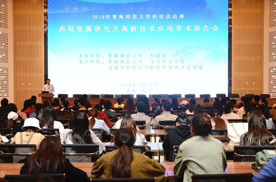 5月17日下午,由我校科技处主办,生命科学学院承办的2018年青海师范大学科技活动周系列活动——药用资源研究及高新技术应用学术报告会在我校图书馆学术报告厅召开。此次学术报告会邀请到中国科学院西北高原生物研究所李玉林研究员、中国科技大学吴疆副研究员和美国GE生物公司生命科学事业部高级工程师张睿博士分别以药物研发、药物新技术应用等方面做主题报告,来自我校及省内高校的200余名教师、本科生、研究生参加此次报告,报告会由生命科学学院总支副书记、常务副院长马建滨教授主持。