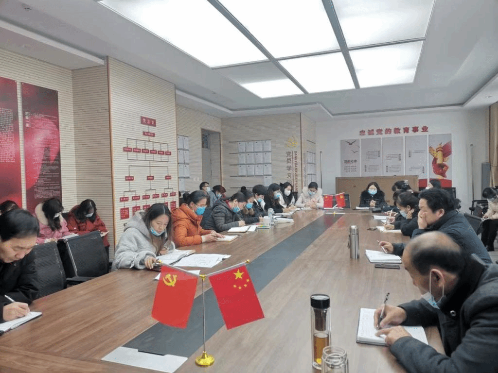 党总支办公室主任余海珠带领全体教师学习《关于建立中小学校党组织领导的校长责任制(试行)》及《深刻认识党的十九届六中全会的历史地位》。
