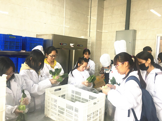 饮食服务公司联合学生会开展了“走进食堂,体验生活”的主题活动。近40名学生参观了食堂的洗菜间、米饭生产线、烹饪间、冷藏库等,并实地观察了食堂切配、炒制、留样、清洁、餐具清洗消毒等各操作流程,工作人员向学生们介绍了食堂的工作环境和工作流程,随后,与食堂师傅们一起择菜,一起交流,同学们全身心投入,积极为晚餐做准备。择菜结束后,大家进入食堂烹饪间,观摩了厨师们娴熟的切菜、烹饪过程。同学们通过亲自动手参与和亲眼所见所闻,了解了食品加工的整个过程和食品安全监督管理过程,体会到了食堂工作的辛苦和工作人员日复一日默默无闻的奉献精神,提高了学生们对后勤服务工作的认知度和满意度。