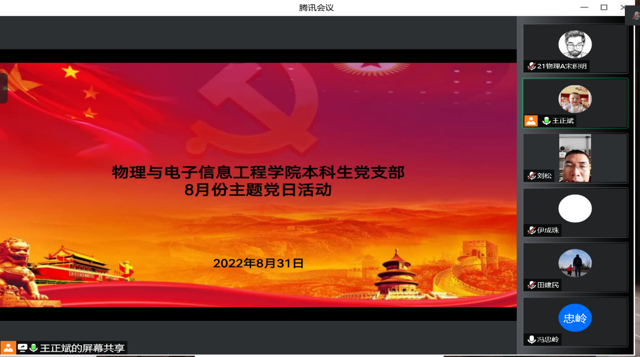为进一步加强师生党员思想政治教育,落实2022年秋季开学疫情防控工作推进会议精神。8月31日下午,物理与电子信息工程学院本科生党支部线上开展“牢记党员使命,做好疫情防护 ”主题党日活动。