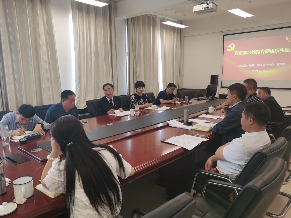 按照学校《关于召开党史学习教育专题组织生活会的通知》要求,7月17日上午,学工处(团委、就业指导中心)党支部在行政北三楼会议室召开党史学习教育专题组织生活会。校党委副书记许存宁以普通党员身份参加会议,机关党委委员李红霞同志到会指导,会议由支部书记周晶主持。