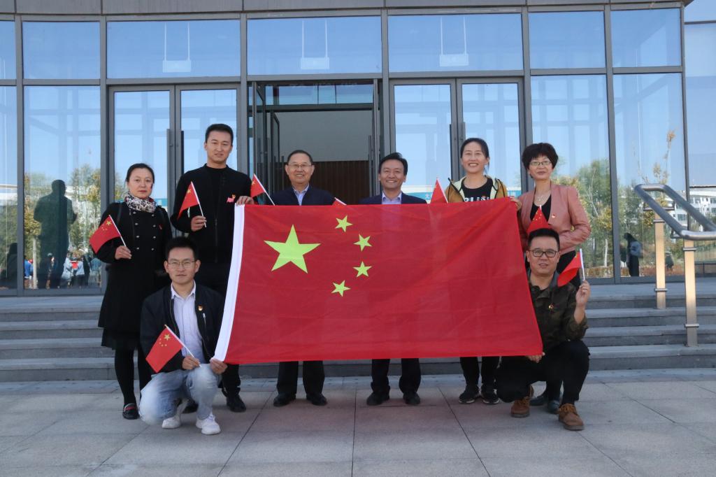 礼炮轰鸣,歌声嘹亮;整齐的队伍,威严的军容;晴朗的天空,欢呼的人群,无不显现出由数十万人参与的新中国成立70周年阅兵庆典的隆重与壮观。当国旗升起,国歌奏响的那一刻,全体师生自发起立,同唱国歌,场面感人。认真聆听习总书记重要讲话,习总书记提到“中国的昨天已经写在人类的史册上,中国的今天正在亿万人民手中创造,中国的明天必将更加美好。全党全军全国各族人民要更加紧密地团结起来,不忘初心,牢记使命,继续把我们的人民共和国巩固好、发展好,继续为实现‘两个一百年’奋斗目标、实现中华民族伟大复兴的中国梦而努力奋斗!”时,现场师生十分激动,不由自主地响起热烈的掌声。随后,阅兵式正式开始,15个徒步方队、12个空中梯队、32个装备方队,威武之师、胜利之师;10万群众、70组彩车、“建国创业”、“改革开放”、“伟大复兴”3个部分,充分展现中国共产党团结带领全国各族人民从站起来、富起来到强起来的伟大征程,深深激发了师生们无限的民族自豪感和爱国热情,自发地挥舞着小国旗随着节拍一起高歌,汇聚成一片红色的海洋。全体师生合唱《我和我的祖国》,激情奋进的歌声在整个报告厅回荡,发自内心的掌声、欢呼声不绝于耳。最后,部处党员干部和广大学生合影留念,为共同祝福祖国70华诞留下珍贵的记忆。