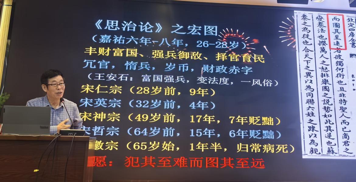 讲座中,龙吟教授用渊博的学识和生动的语言,带领大家走进了苏轼波澜壮阔又充满诗意的人生。龙吟教授从“根骨”“宏图”“困厄”“乐活”四方面深入剖析了苏轼跌宕起伏的一生和“少年揽辔澄清、青年未来宰相,中年千古风流”的理想人设。从历史名人苏武、苏秦、苏味道,再到祖父苏轼、父亲苏洵、母亲程氏,苏轼的成长与家族传承和文化浸染密切关联。步入仕途的苏轼提出了“未穷而变”“环之无端”的变革理想,虽历经坎坷却尽显其豁达超脱,展现出“不怨尤、不滞留、乐悠游”的生活智慧,最终形成了“博观、达观、乐观”人生境界。