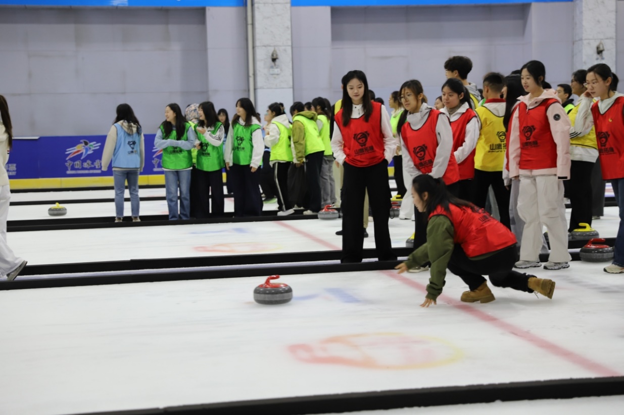 队伍组建后,现场开展了系列热身小游戏,让队员们在轻松愉快的氛围中打破隔阂、熟悉彼此,快速培养出初步的协作默契,为后续竞技活动奠定了良好基础。冰壶馆内,学员团队分工明确、相互配合、精准布局,场馆内不时响起阵阵加油与喝彩声,在瞄准、投掷的过程中,既展现了冷静思考的策略性,也体现了团队协作的重要性。