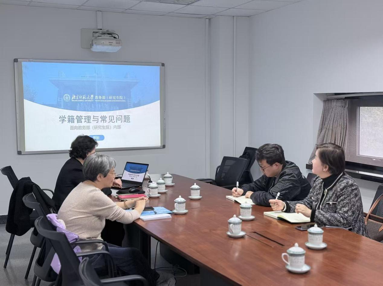 在为期两周的交流中,我校研究生院代表通过“一对一”岗位跟学,参与实际业务操作等方式,全面了解了北师大教务部(研究生院)综合职能管理、学籍异动处理等业务细节,特别是招生命题过程性管控方面的成熟做法令其收获颇丰。