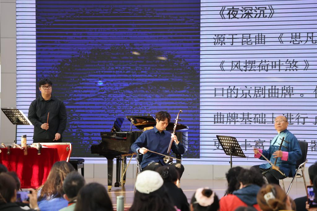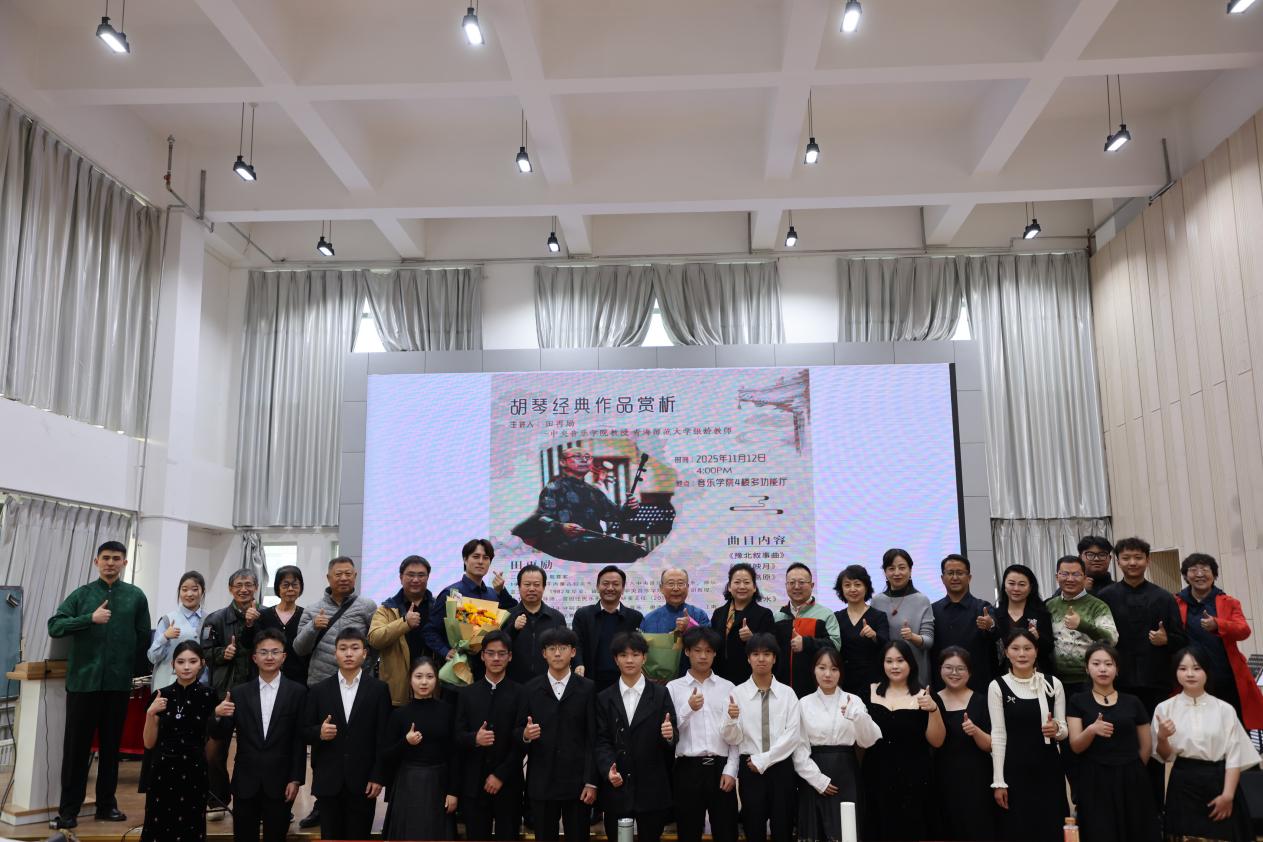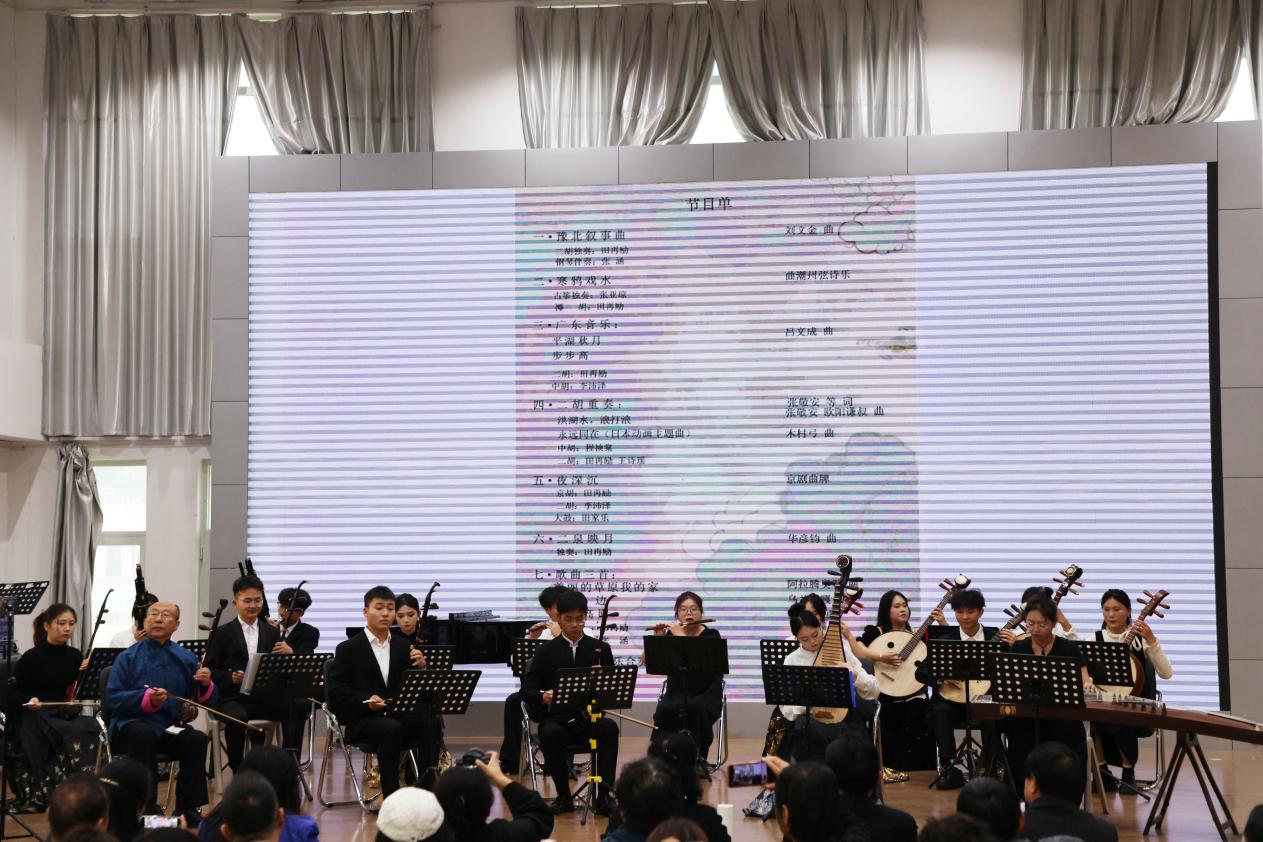 现场演绎环节更是精彩纷呈,田再励教授与助演嘉宾以“讲演结合”的方式,倾情呈现《寒鸦戏水》《夜深沉》等经典代表性曲目。在音乐学院“琴园”民族室内乐团的协奏下,整场讲座在欢快的《喜洋洋》合奏中圆满落幕,实现了学术理论与艺术实践的深度融合。
