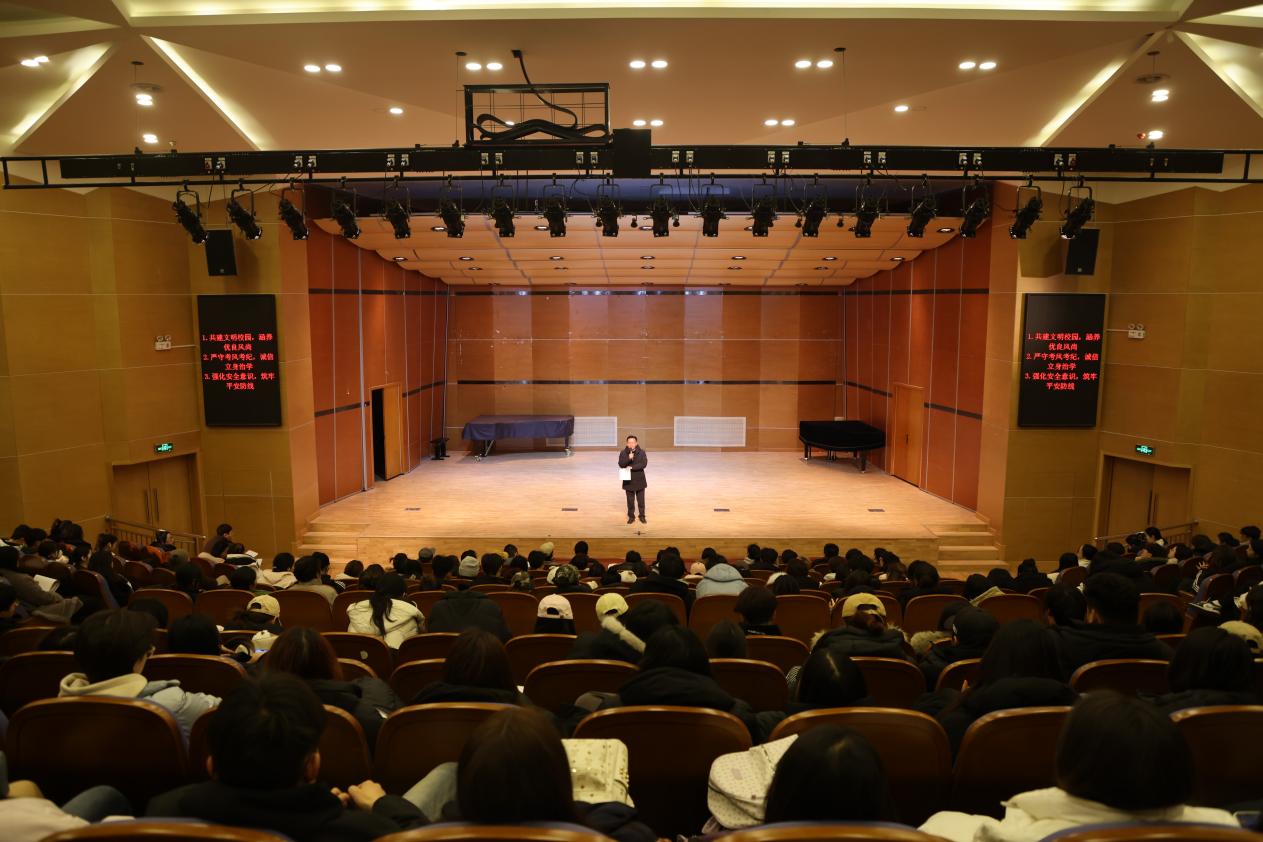 为表彰先进典型、规范学生行为、强化育人实效,12月24日晚,音乐学院在音乐厅召开第七次主题班会,学院负责人、辅导员、班主任及全体学生参会。