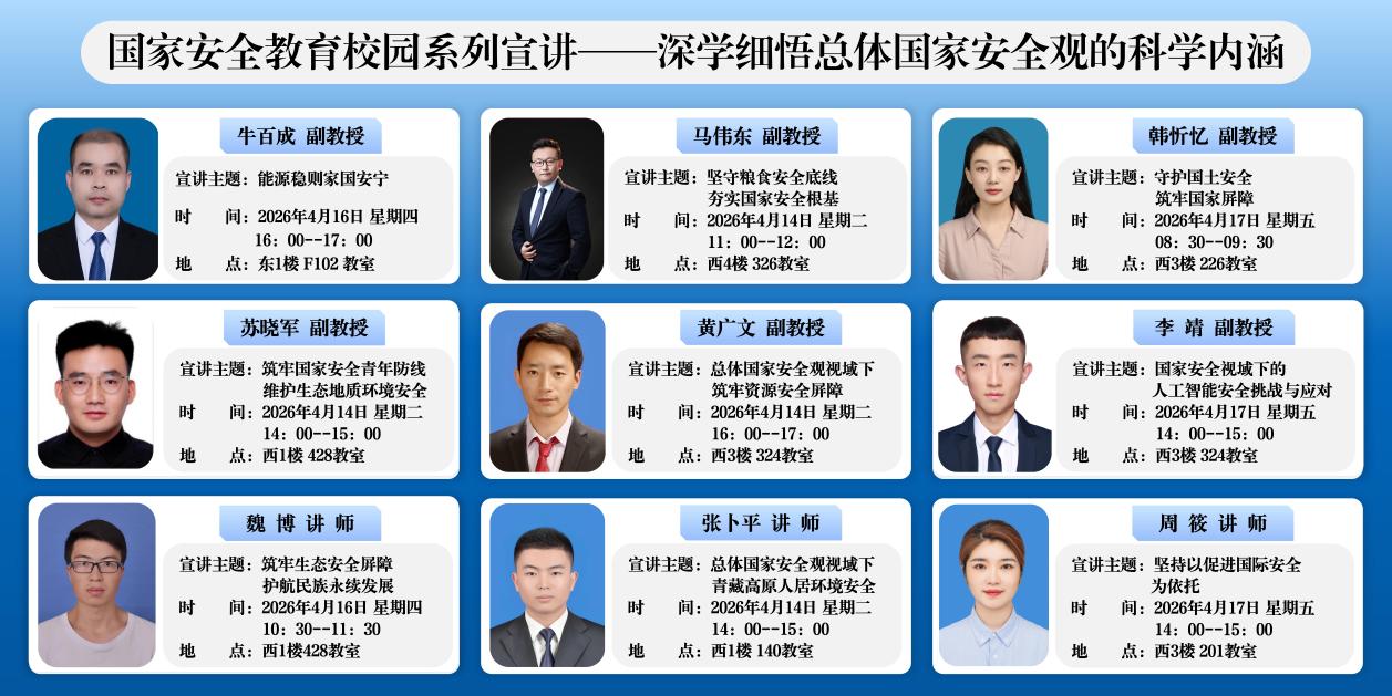 为深入贯彻落实总体国家安全观,切实提升全校师生的国家安全意识和责任担当,国家安全与应急管理学院在校党委宣传部、校团委、校保卫处的指导支持下,紧扣“统筹发展和安全,护航‘十五五’新征程”的科普宣教主题,立足学院专业特色,精心策划、有序开展了系列国家安全宣传教育活动,通过“赛事引领、宣讲赋能、科普筑基”三维模式,推动国家安全理念深入人心,取得了良好的教育效果和校园反响。