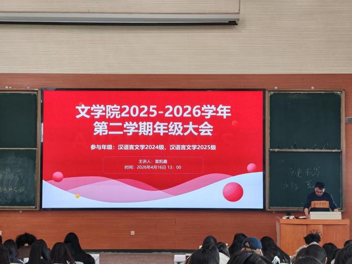为进一步强化学生安全意识,规范德育与综合测评工作流程,明确近期集体活动要求。文学院于4月16日召开年级大会,辅导员袁凯鑫主持会议,2024级、2025级全体学生参会。
